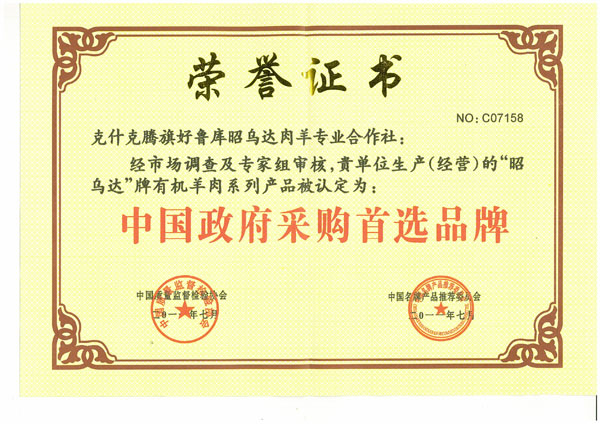 荣誉证书优质名牌