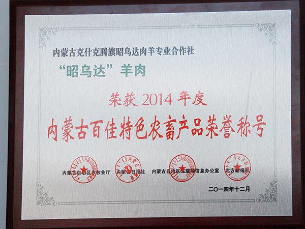 >>>内蒙古百佳特色农畜产品荣誉称号